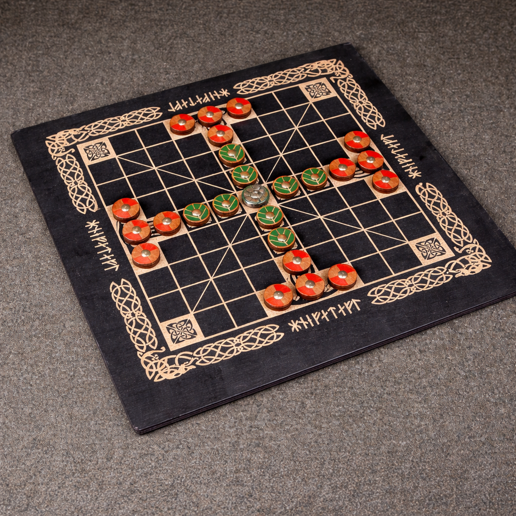 Хнефатафл — старинная скандинавская игра, первые упоминания о которой датируются III веком нашей эры. В эпоху викингов она распространилась далеко за пределы Скандинавии: её знали в Гренландии, Исландии, Уэльсе, Британии, а также, вероятно, на Киевской Руси — там игра была известна под именем «Тавлеи».