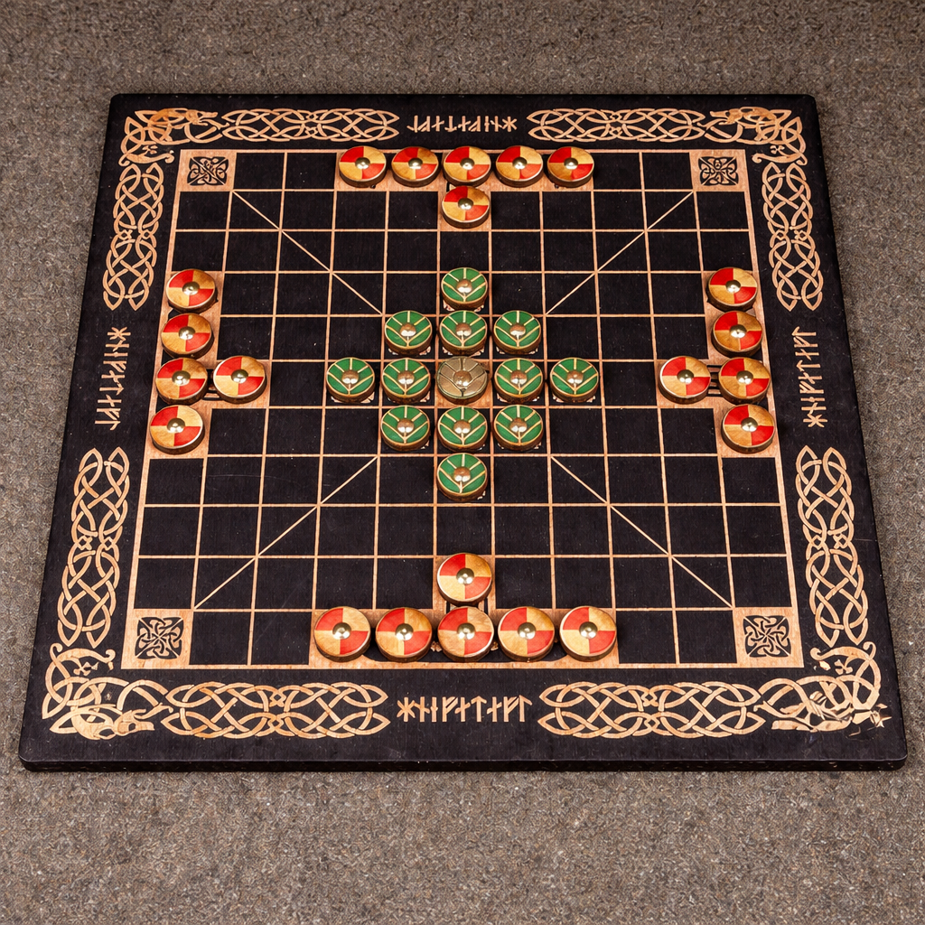 Откройте для себя атмосферу древних викингов с двусторонней доской для игры Хнефатафл — подлинного наследия скандинавской культуры!
